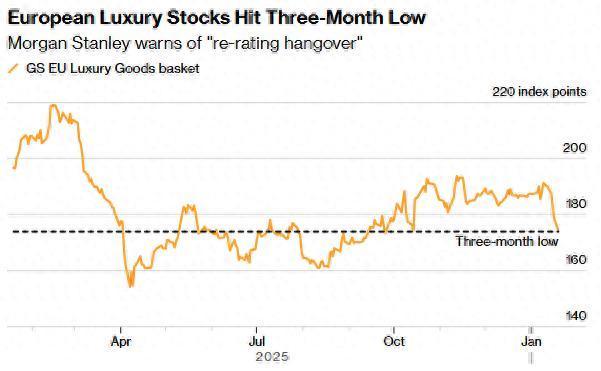 数据显示,上季度奢侈品板块估值升至近四年来的最高水平,高盛追踪该行业的股票组合的市盈率超过30倍。该板块自去年4月份跌至低点以来,截至2025年底已上涨21%。