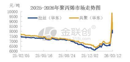 进入2026年,PP价格呈现阶段性反弹后震荡的走势。年初受中东冲突升级影响,国际原油价格飙升,带动石脑油、丙烷等上游原料价格上涨,推动PP价格阶段性反弹,3月全国PP拉丝市场均价较2月末涨超2000元/吨,涨幅超30%。但中长期来看,国内产能持续扩张、供过于求格局未改,价格反弹后逐步回落,全年均价预计维持在8200-8800元/吨。不同工艺企业盈利分化加剧,油制PP受原油价格高位影响,仍面临亏损压力,而煤制PP依托稳定的成本优势,盈利空间大幅提升。