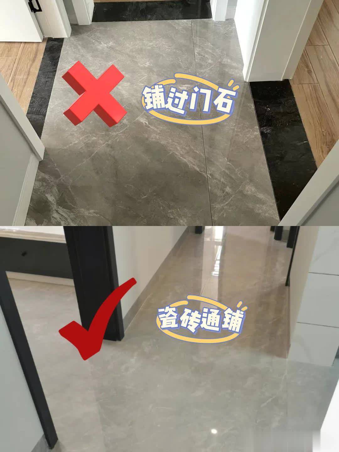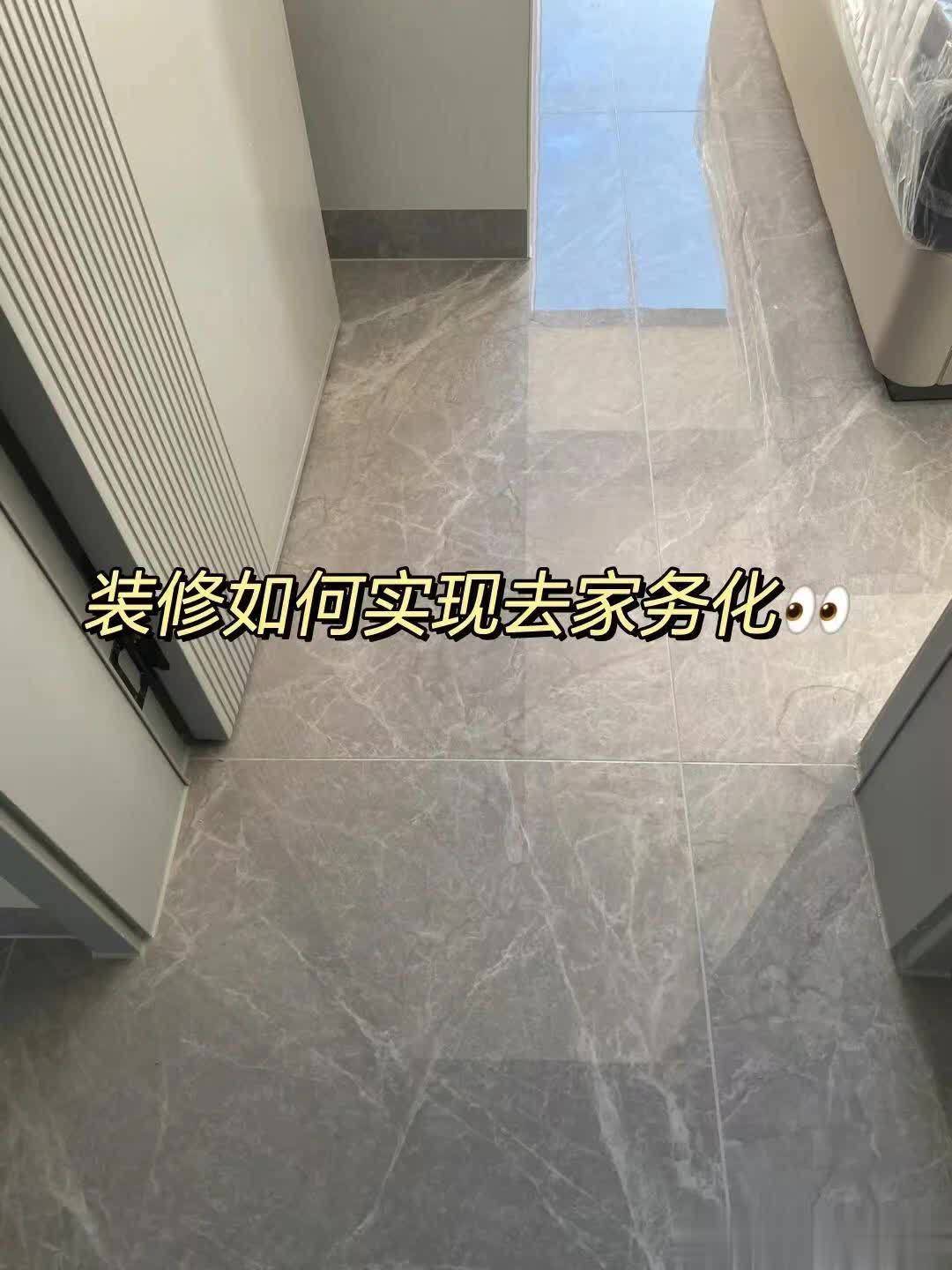 所以再次装修,我选择全屋通铺瓷砖,不安装过门石,不铺地毯;墙砖也用80×80cm的标准瓷砖,不特意用小砖。