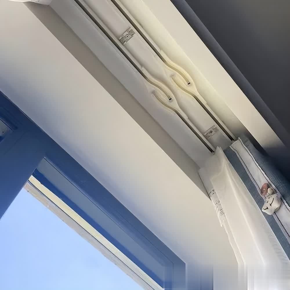 ▲而且安装窗帘盒时,可采用极简的交叉轨道,确保晚上窗帘严丝合缝,实现完美遮光,这是罗马杆无法做到的。